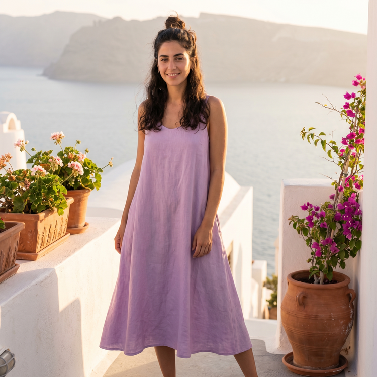 SAVE 30%שמלת מקסי פשתן בגזרת A עם גב חשוף