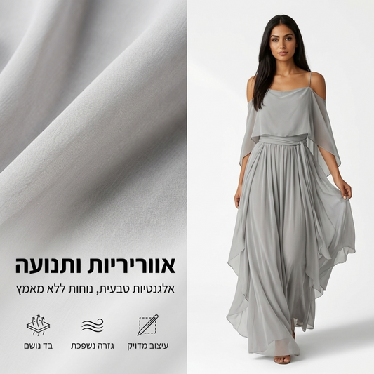 שמלת מקסי נשפכת עם כתפיים חשופות בגוון אפור-כסוף