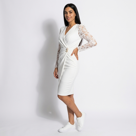 SAVE 40%שמלת מעטפת מיני לבנה עם שרוולי תחרה