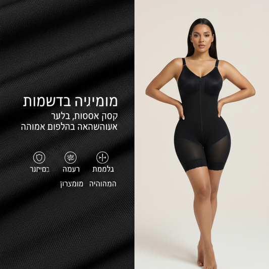 בגד גוף מעצב מחטב עם רוכסן קדמי