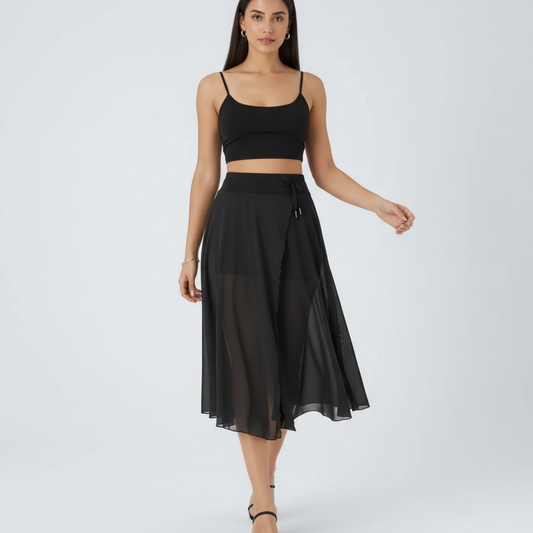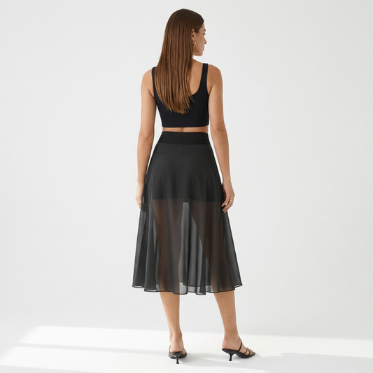 חצאית מעטפת שקופה באורך מידי בצבע שחור