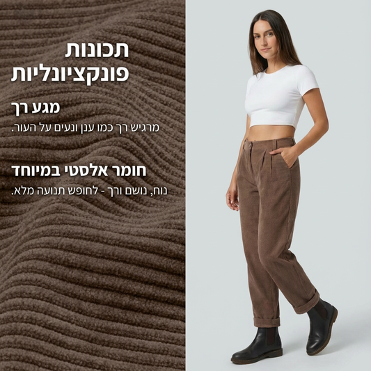 מכנס קורדרוי נוח ואלגנטי עם מותן בינונית