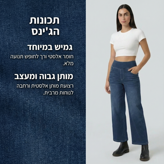 ג'ינס סטרץ' מחטב בגזרה רחבה לנשים (ללא רוכסן)