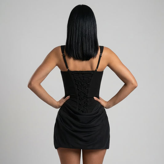 בגד גוף מעצב עם רוכסן קדמי ורשת בצדדים שחור