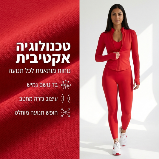 SAVE 25%ז'קט אקטיב צמוד עם רוכסן בגוון אדום
