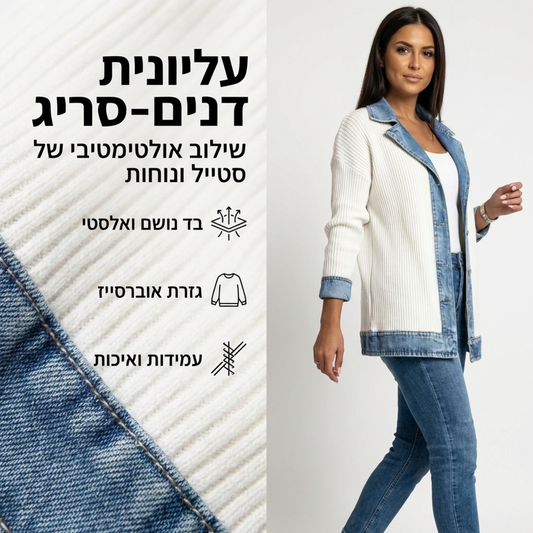 SAVE 73%ז'קט קרדיגן משולב דנים וריב בקרם
