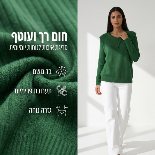 SAVE 50%סריג ירוק עם צווארון פתוח