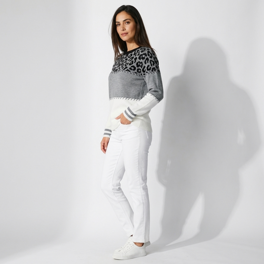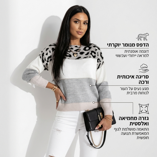 SAVE 50%סריג בלוק צבעים עם הדפס מנומר