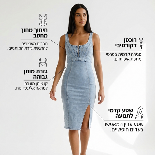 שמלת ג'ינס מידי בייבי בלו עם שסע קדמי
