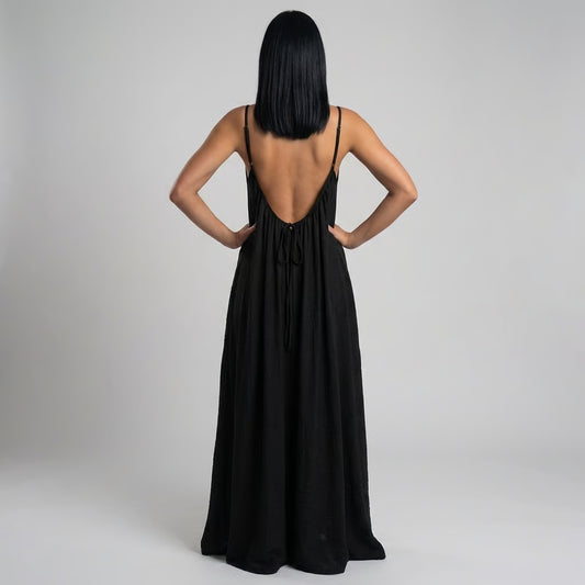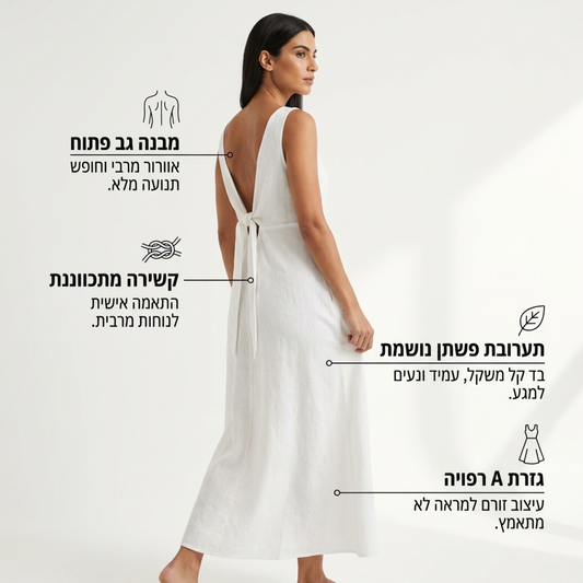 SAVE 30%שמלת מקסי פשתן בגזרת A עם גב חשוף